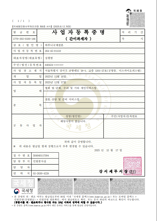 Haruni는 국제결혼중개업으로 정식 승인된 업체 입니다.