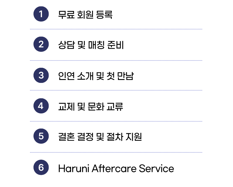 아래 절차를 통해, 가입에서 결혼까지 Haruni가 함께합니다.